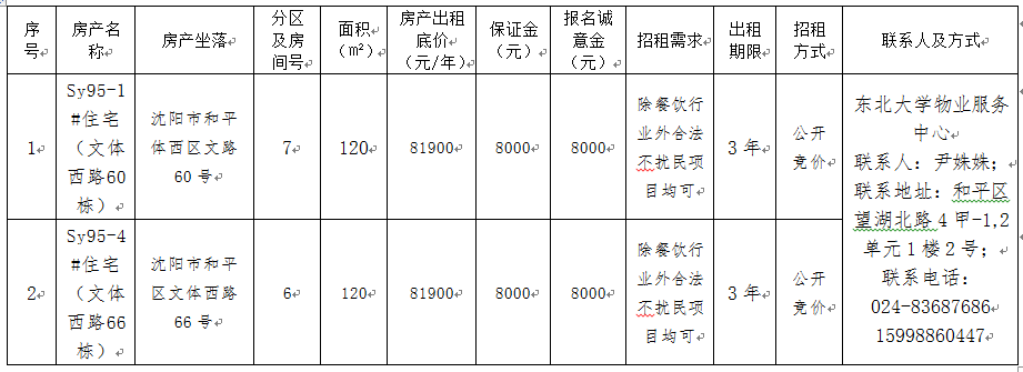 根据《东北大学房产出租、出借管理暂行办法》和《东北大学房产公开招租办法》的相关要求,结合我校房产出租的实际需求,对以下房产开展公开招租工作,现公告如下: