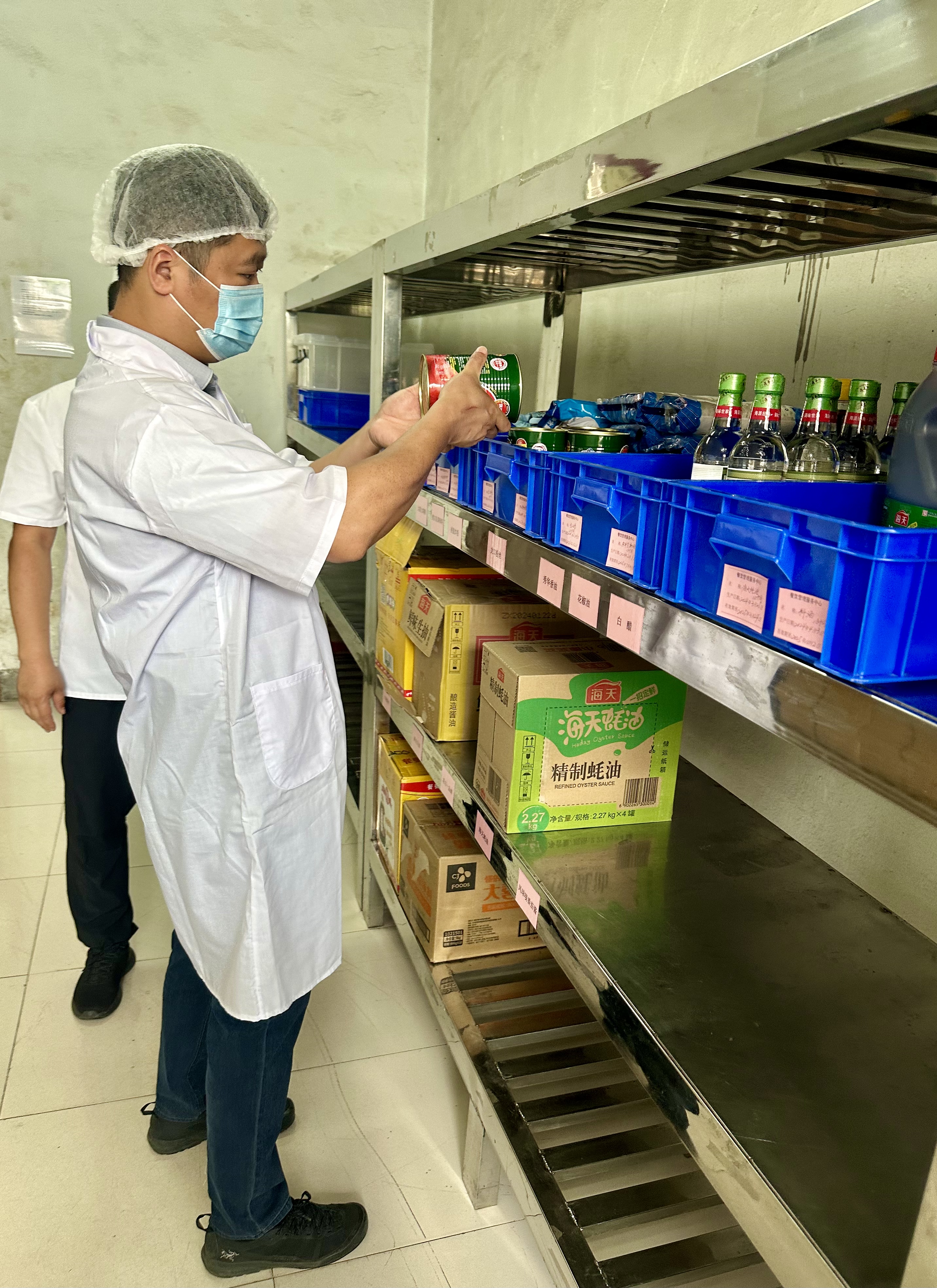 中心主任张立志带队来到浑南校区第一食堂和第二食堂,听取了食堂负责人关于食品安全、伙食保障等情况的汇报。他先后深入食堂后厨、主副食储藏室等地开展实地检查,详细检查各个食堂操作间环境卫生、食品留样、加工售卖、餐具消毒、消防设施等食品安全保障情况,并就下一步抓好校园食品安全提出了明确要求。张立志指出,餐饮中心全体员工要提高认识,食品安全关系广大师生员工生命健康,要以时时放心不下的责任感抓好抓实食品安全工作,牢牢守住师生“舌尖上的安全”。他强调,在管理上要特别细致和严格,各食堂的管理人员要严格落实监督职责,严抓各项日常管理制度落实,坚决守住食品安全底线,为学校师生提供安全的饮食和用餐环境,为平安校园建设奠定坚实基础。