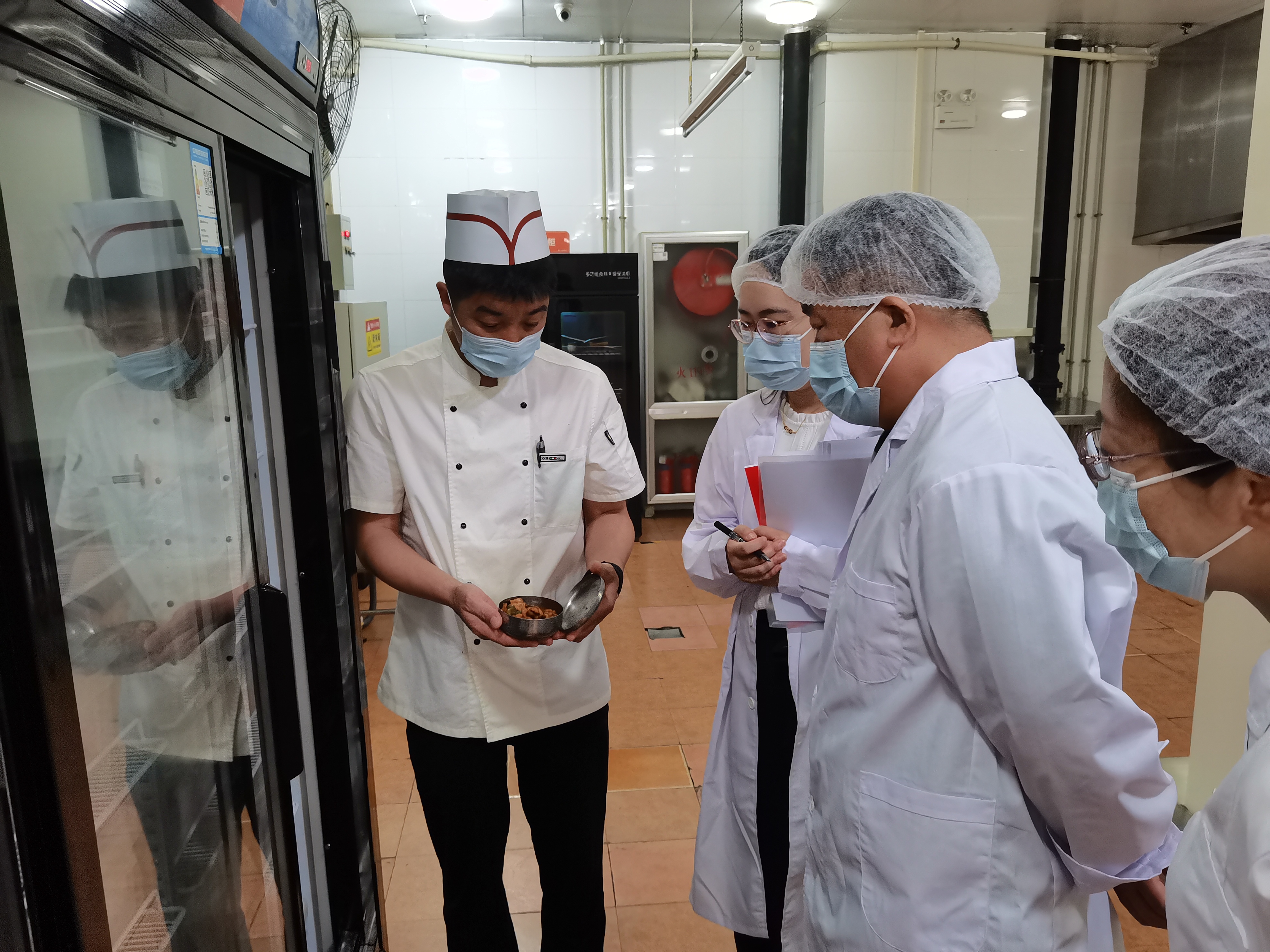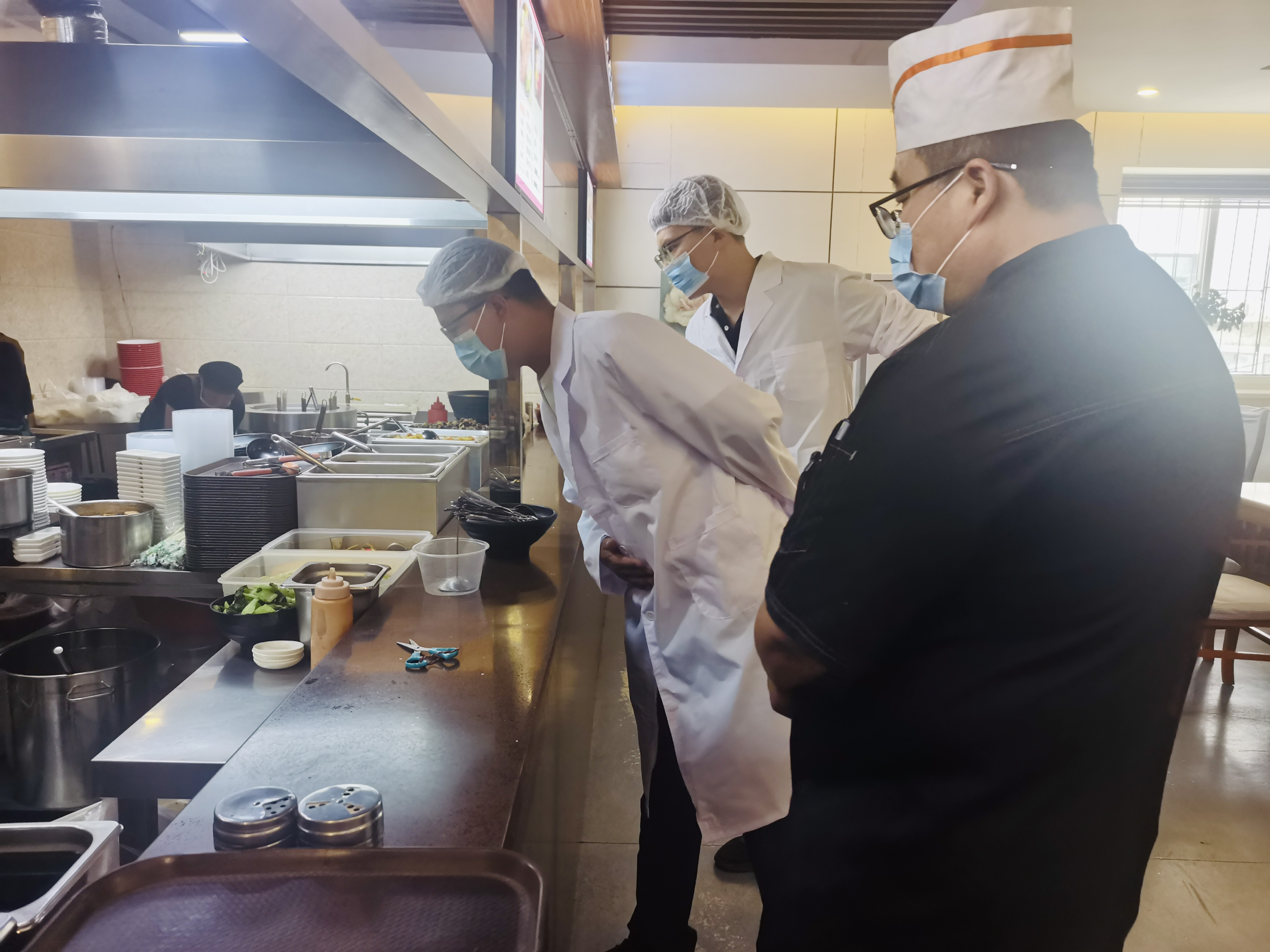 中心副主任姜孝宇、王晓峰、李鹏分组带队,分别赴南湖校区和沈河校区各食堂开展食品安全检查工作。在食堂负责人的陪同下深入食堂后厨,重点对各食堂卫生状况、师生意见簿、库房内物资存放、操作间的规范管理、设备设施消毒、餐具消毒和食品留样是否符合要求等方面进行了重点检查。对食材的来源和质量、保质期以及是否存在过期、变质等问题也进行了监督检查。