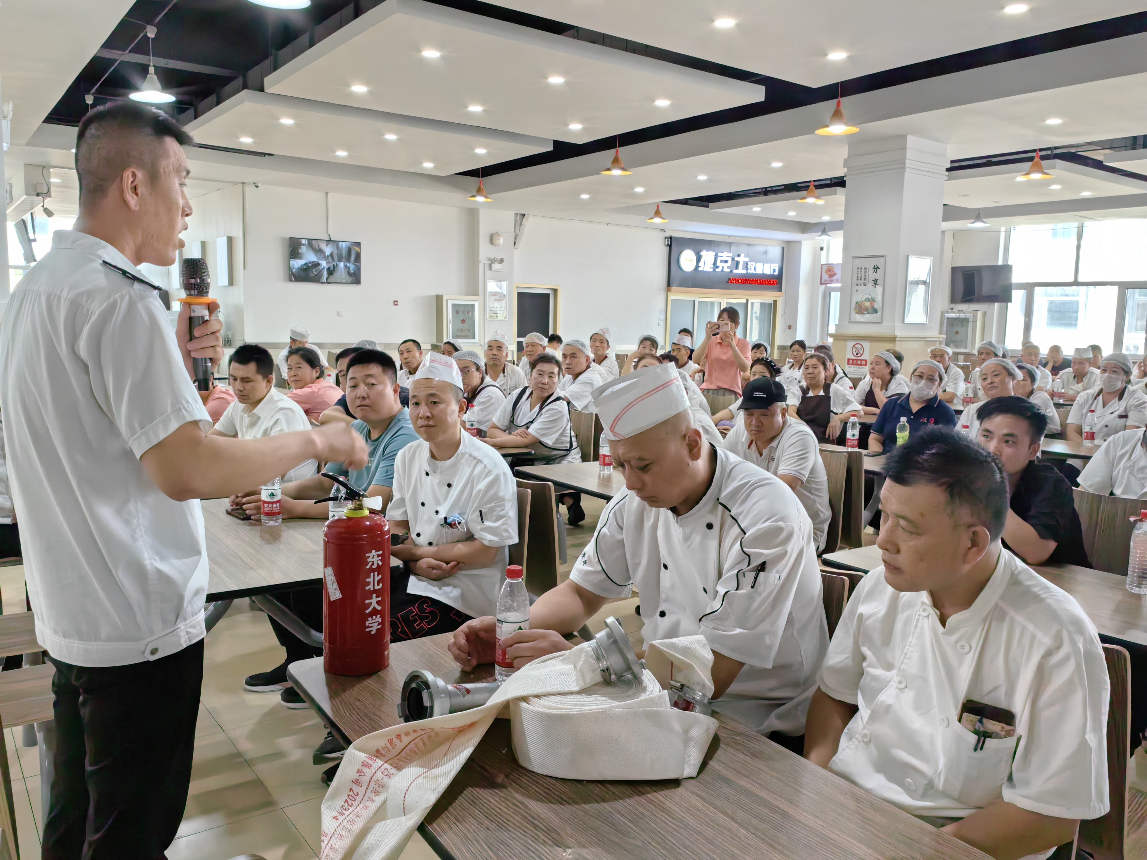 为贯彻落实安全生产月相关要求,6月28日,餐饮中心在学生城食堂组织开展应急疏散演练,各食堂主任携安全员等重要岗位员工现场观摩学习。餐饮中心高度重视本次演练,精心设计演练方案,特邀请辽宁省群安消防知识宣传中心的范教官为本次演练提供理论和技术指导,演练前现场演示消防器材的使用、强调应急疏散注意事项,同时明确演练流程、疏散路线,并对各组人员职责进行了明确规定,落实责任到人。本次应急疏散演练活动,将在各食堂陆续开展,以实现畅通应急通道、指导员工熟悉逃生路线的目标,并切实提高员工应对突发事件下听从指挥、自救互救的能力。