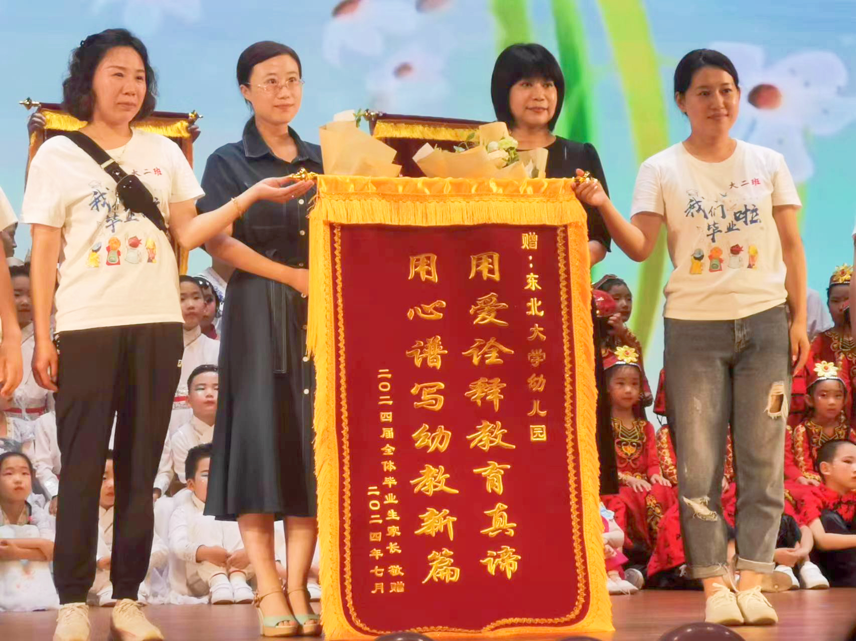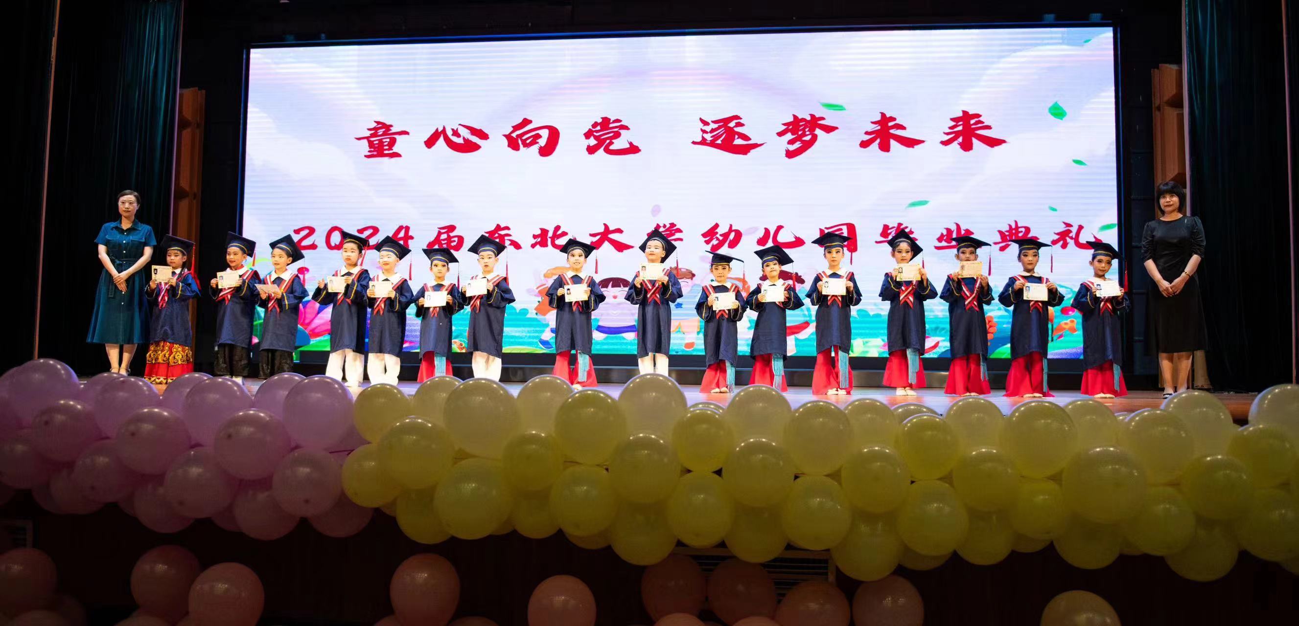 2024年7月18日,东北大学幼儿园在汉卿会堂举行“童心向党,逐梦未来”幼儿毕业典礼。在这温情与欢笑相互交织的璀璨时刻,全体教师携手毕业生家长,共同见证了百余名稚子的成长之花悄然绽放。