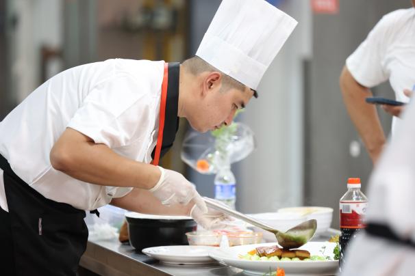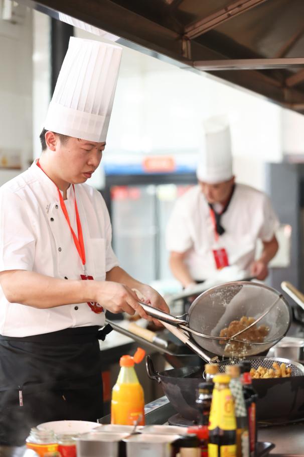 大赛分为红案、白案两个竞赛大项,来自全省24所高校及合作单位的参赛选手们参加了比赛。在厨艺展示环节,选手们纷纷亮出自己的拿手好菜,让人目不暇接。红案厨师从选材、切配、调味到火候掌控,展现了对烹饪技艺的精益求精,他们利用不同的食材和烹饪技巧,创作出一道道别具一格的菜品,不仅味道独特,更充满了创意;在白案厨师的手中,面点不仅是食物,更是艺术品,他们用丰富的想象力和创造力,不断尝试新的口味和造型,每一种面点都是劳动智慧的凝聚,为评委、嘉宾们带来了不一样的味蕾体验。
