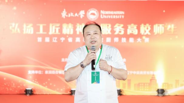 辽宁省高等学校伙食专业委员会委员、辽东学院后勤服务总公司总经理隋波涛在赛前致辞。他表示,本次厨师技能大赛得到了各方支持,感谢主办方辽宁省高等学校伙食专业委员会与承办方东北大学的倾情付出,感谢各支持单位的大力支持,为省内各高校厨师提供了一个同台竞技、交流提升的舞台。各位参赛厨师精神面貌良好、比赛准备充分,希望参赛选手能够珍惜机会,赛出友谊、赛出风格、赛出水平,取得优异的成绩,并预祝本次大赛圆满成功。