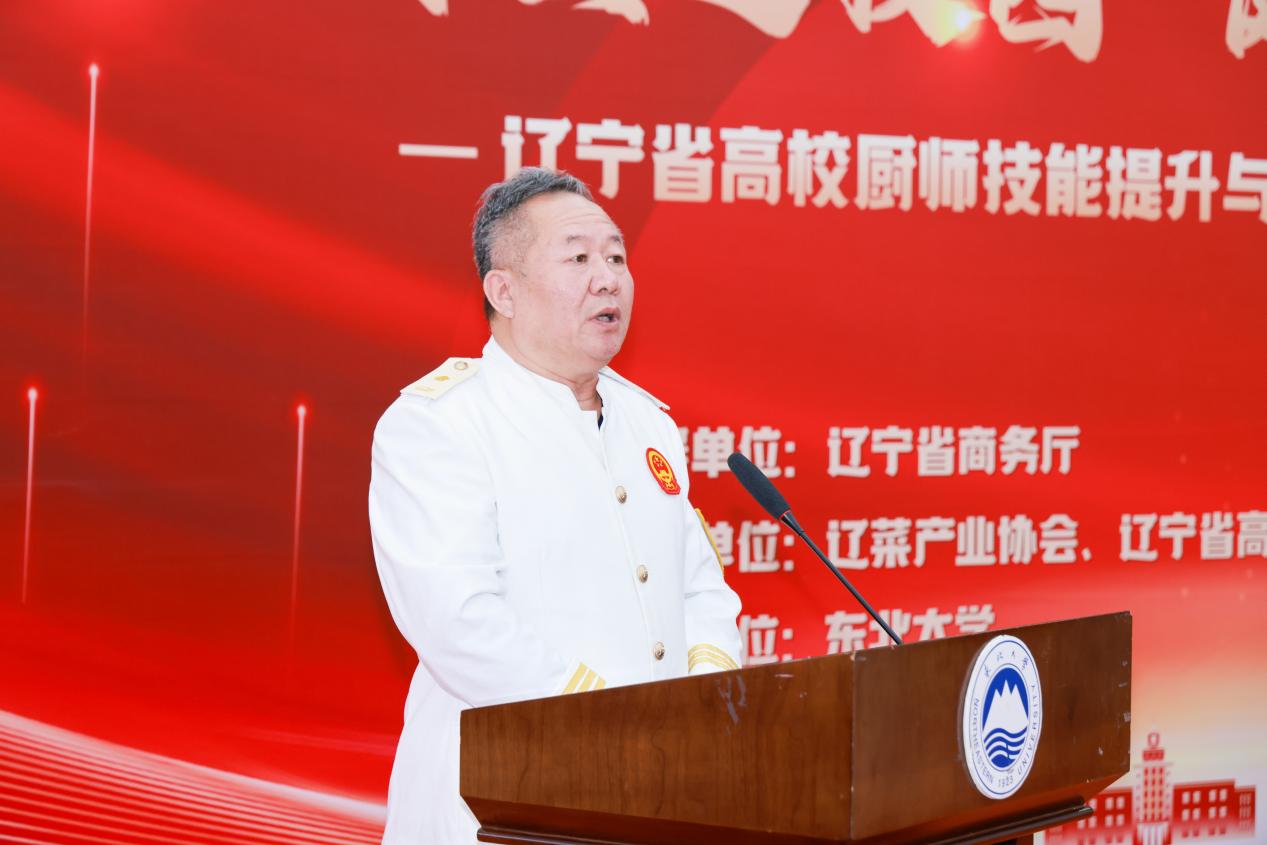 辽宁省高等学校伙食专业委员会主任、东北大学后勤服务中心主任张立志为本次活动致辞。他首先对辽宁省商务厅的指导表示衷心感谢,并高度肯定了辽菜产业协会对本次活动的专业支持。他指出,此次活动的举办为全省高校餐饮工作者搭建了一个高水平的交流平台,对提升高校餐饮服务质量、推动营养健康膳食发展具有重要意义。他期待全体与会人员能够充分交流、互学互鉴,共同为辽宁高校餐饮事业的创新发展贡献力量。